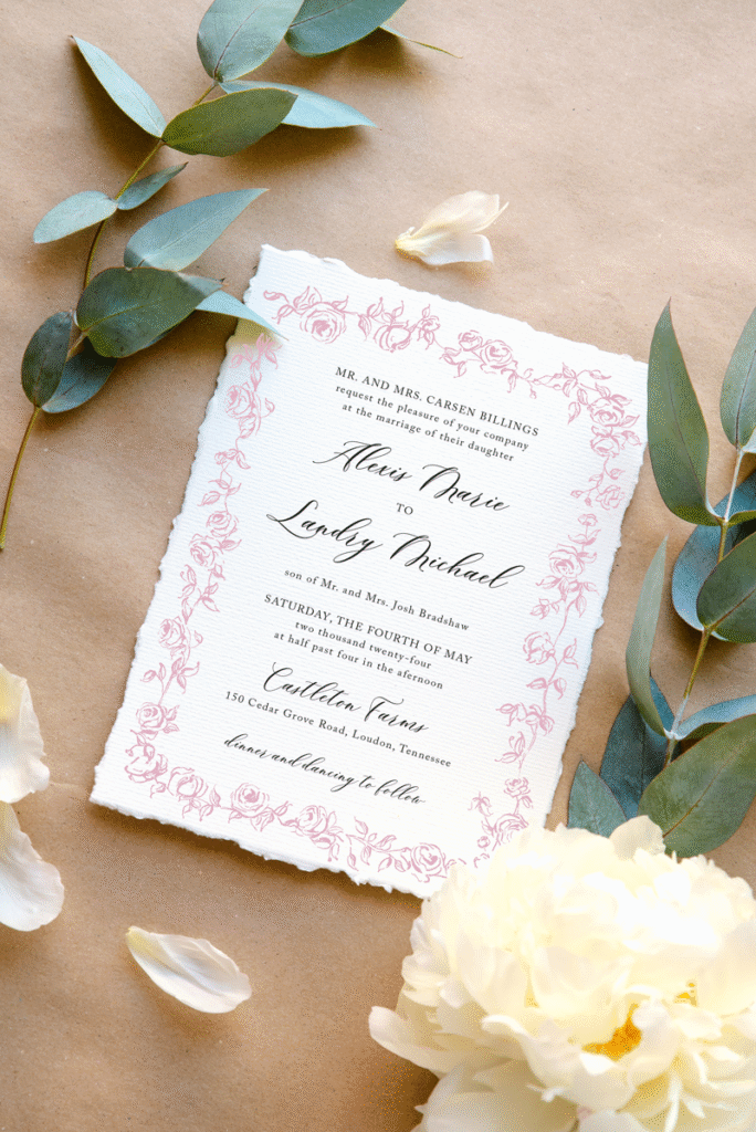 Cotton paper has a soft, organic feel and a slightly irregular texture that many couples love. It’s often associated with heirloom-style stationery and works beautifully with classic typography and simple layouts.